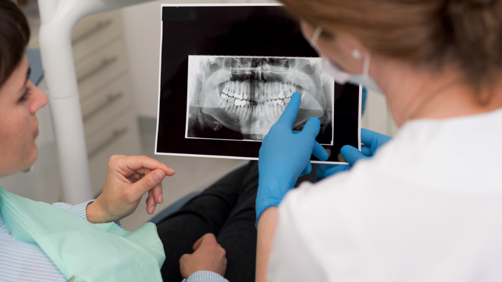 La radiografía dental es una clase de imagen tomada a la boca y dientes, una imagen alcanzada gracias al uso de rayos X (forma de radiación electromagnética de alta energía) que penetran en el organismo y entregan un registro en una pantalla digital o película revelada. Las estructuras densas, como las famosas tapaduras (obturaciones) metálicas, se muestra de color blanco en la radiografía, por su parte las estructuras que contienen aire aparecerán de color negro; los dientes, líquidos y tejidos, de un color sombreado o gris. En cuanto a la manera en que se realizan estas tomas, se tiene que mencionar que se realizan en consultorios o clínicas odontológicas. En la actualidad y gracias a los avances en tecnología, la mayoría de las radiografías dentales son digitales, puesto que la radiación transmitida durante este procedimiento es menor a la utilizada con el método tradicional. Este examen casi no requiere preparación, más bien se trata de una práctica diaria (por su baja dosis de radiación ionizante), utilizada por el dentista o cirujano para tratamientos de extracciones e implantes, aparatos dentales y dientes postizos. No obstante, el especialista analiza si es seguro tomar estos exámenes dentales a embarazadas, esto según el tiempo de gestación. Por otra parte, en su práctica se les solicita a los pacientes que quiten joyas, lentes u objetos metálicos que pudieran afectar el resultado de esta técnica de rayos X. Los otros detalles en el cómo se toman las radiografías dentales, tienen que ver con los cuidados del paciente, por ejemplo proteger de la exposición radiactiva al resto del cuerpo con un delantal de plomo. Tipos de radiografías dentales Los tipos de radiografías se dividen en intraorales y extraorales. Dentro de las radiografías intraorales, es decir imagen del interior de la boca, encontramos: la radiografía periapical, palatal (también conocida como oclusal) e interproximal (aleta de mordida). En las radiografías extraorales, o sea tomadas desde afuera de la boca, está: la cefalométrica (teleradiografía) y panorámica (ortopantomografía). La elección de una de estas alternativas va a ser elección del especialista, guiado con las condiciones particulares que pueda presentar el paciente. En la radiografía periapical se entrega una imagen del diente completo, desde su raíz hasta la corona completa, incluyendo el tejido circundante, nos ayuda a valorar problemas de un diente en particular o infecciones en el tejido de soporte. La radiografía palatal o oclusal entrega una imagen de los dientes escondidos, para lograrlo el tubo de rayos X se posiciona perpendicular a la placa, esta alternativa se encuentra en desuso, ya que el escáner 3D permite una valoración más exacta de la posición. La radiografía interproximal o aleta de mordida, valora sola la corona de los dientes, sirve puntualmente para detectar las caries interproximales y se realiza mordiendo un posicionador. La cefalométrica, también conocida como teleradiografía, arroja una imagen lateral de la cara para mostrar la mandíbula y estructuras de esta área, se ocupan para diagnosticar problemas en las vías. Radiografías panorámicas dentales La radiografía más utilizada en la consulta dental es la panorámica o ortopantomografía, esta radiografía muestra dientes y maxilares en la misma toma, y se realiza ocupando una máquina especial que rota alrededor de la cabeza. En el tema de cómo se toman las radiografías dentales, se pueden reconocer también sus ventajas, como en el caso de la panorámica, imagen que logra entregar mucha información, recurriendo a un procedimiento dental sencillo, que presenta una carga mínima de radiación.