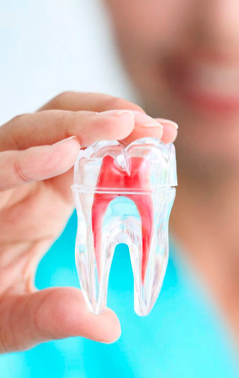 También conocido como tratamiento de conducto, consiste en la extirpación completa del tejido pulpar o nervio de la pieza dental causante del dolor. Todos los dientes tienen en su centro un núcleo de vasos sanguíneos y nervios llamados pulpa. Estas se ubican en un espacio llamado conducto radicular, cada diente puede tener uno o más de estos conductos.