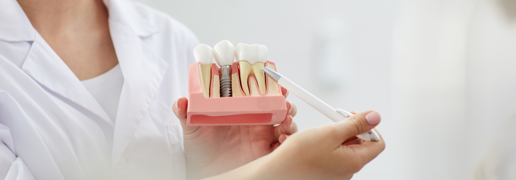 Implante dental: Consiste en colocar un tornillo de titanio que va en el hueso del maxilar, funcionando como raíz artificial. Sobre ella se pone una funda que imita el color y forma de los dientes. Se puede realizar una o la pieza dental completa, produciendo funciones similares a los dientes naturales como la masticación. Con el correcto cuidado pueden durar toda la vida.