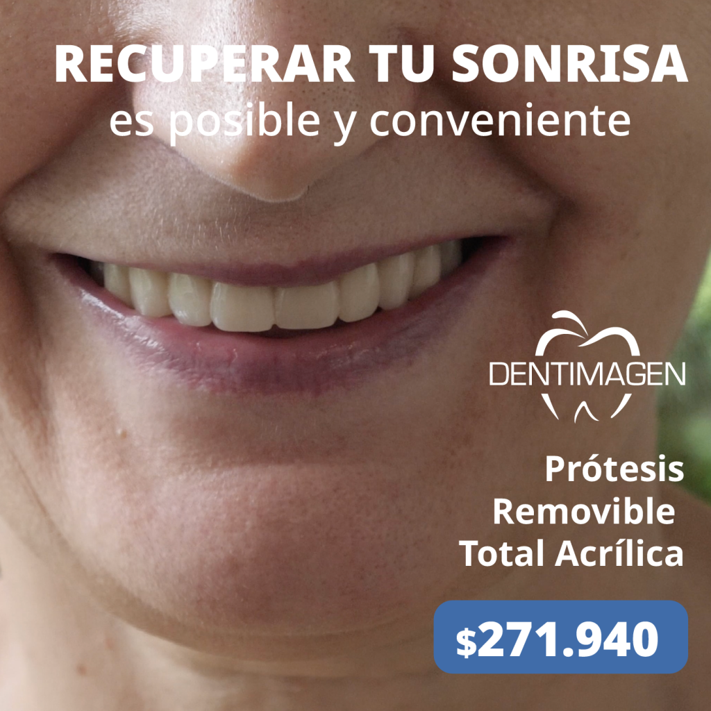 Una prótesis removible total acrílica es la solución conveniente que estás buscando. En Dentimagen te entregamos un tratamiento completo y profesional para que recuperes tu calidad de vida.